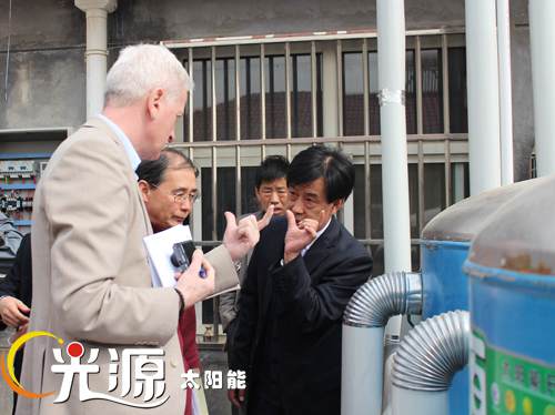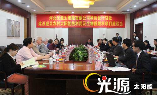 識(shí)別團(tuán)一行在河北省發(fā)改委外資處副處長(zhǎng)史海峰、河北省財(cái)政廳涉外處副處長(zhǎng)何貴滿、河北省新能源技術(shù)推廣站副主任王香雪及市直有關(guān)部門(mén)負(fù)責(zé)人的陪同下實(shí)地考察了光源公司威縣農(nóng)村太陽(yáng)能熱利用及生物質(zhì)燃料項(xiàng)目。通過(guò)考察了解了太陽(yáng)能采暖、太陽(yáng)能熱開(kāi)水系統(tǒng)的工作原理、項(xiàng)目周邊環(huán)境及使用情況,并對(duì)項(xiàng)目的具體情況展開(kāi)了座談?dòng)懻摗9庠垂靖笨偨?jīng)理邵東坤就光源公司的基本概況、經(jīng)營(yíng)情況以及世行貸款項(xiàng)目概況向識(shí)別團(tuán)進(jìn)行了匯報(bào),識(shí)別團(tuán)針對(duì)項(xiàng)目的建設(shè)內(nèi)容、開(kāi)發(fā)潛力、市場(chǎng)風(fēng)險(xiǎn)等問(wèn)題進(jìn)行了提問(wèn)和討論。
